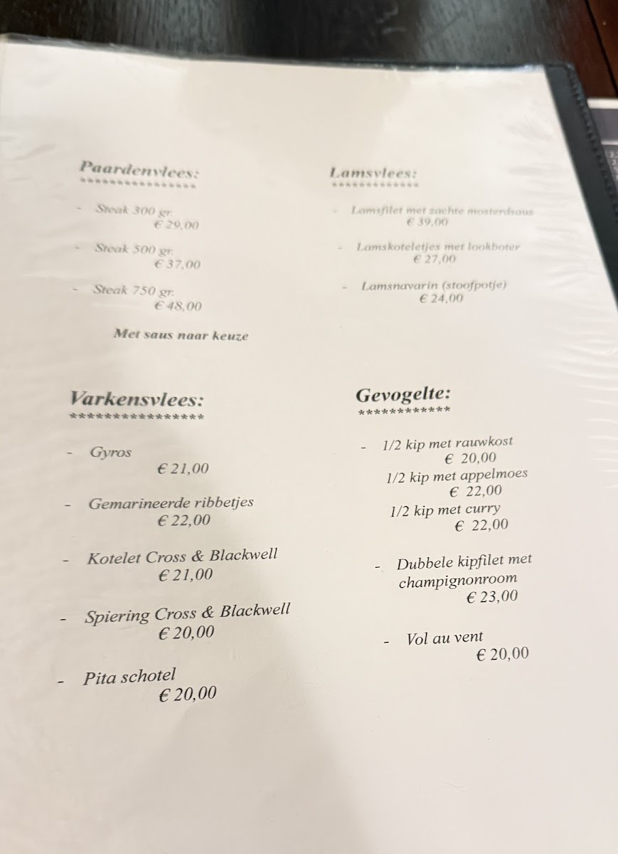 The menu at Arachna Haacht presents a confident balance between classic brasserie comfort and refined European flavors, with a clear focus on quality proteins and well-known regional pairings. Meat lovers are well catered for with robust main dishes such as Rumsteak, Rumsteakmet Groenten, Filet Pure & Frietjes, Mixed Grill, Lamsfilet, E Varkens Boutje, Een Klein Hametje, Hamburger, and the more game-forward Bosduif, each reflecting a menu built around hearty portions and traditional preparation. Seafood plays an equally important role, from signature starters like Noorse Visschotel Voorgerecht, Duo Kaas En Garnaalkroket Voorgerecht, Scampi's Van De Chef, Scampi Diabolique, and Scampi's Met Look Voorgerecht, to more elaborate plates such as Mosselen, Asperges Met Tongrolletjes, and Asperges Met Gerookte Zalm Voorgerecht Over Heerlijk, which highlight seasonal ingredients and classic Belgian seafood combinations. Pasta and lighter mains are represented by Tagliatelle Met Zalm, offering a creamy, approachable alternative to the grill-focused dishes. For starters with a fresh and savory contrast, Serano Ham Met Meloen stands out as a timeless choice that balances saltiness and sweetness. The menu is rounded off with thoughtful beverage options like Geuze, reinforcing the restaurant’s Belgian identity. Overall, the selection feels cohesive and deliberate, favoring familiar flavors executed with care rather than unnecessary complexity, making the menu approachable for a wide audience while still offering enough variety to encourage return visits.